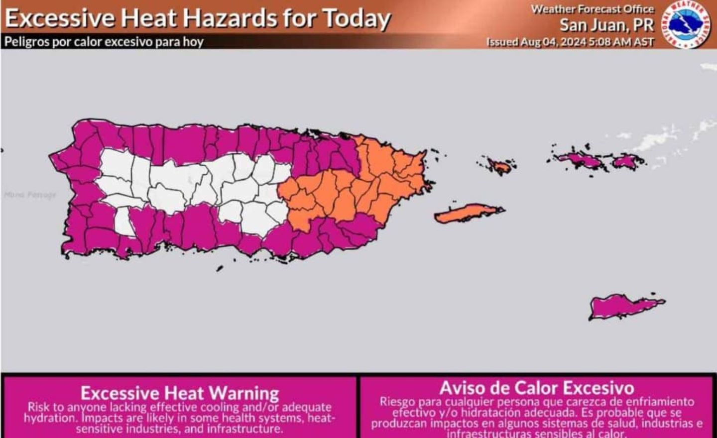 En adición, se ha emitido una vigilancia de calor excesivo para este lunes debido a que se espera que el calor intenso continúe por los próximos días.