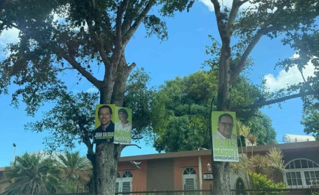 “La alianza independentista del Partido Independentista Puertorriqueno y el partido Movimiento Victoria Ciudadana hablan de crímenes ambientales, sin embargo hoy vemos cómo clavan rótulos de campaña política en árboles. Tenemos fotografía de tres rótulos, uno con la foto y mensaje de Juan Dalmau, el otro de Dennis Marques y un tercero con María de Lourdes Santiago; los tres clavados en dos árboles en una urbanización de San Juan”, señaló el licenciado Torres Montalvo.