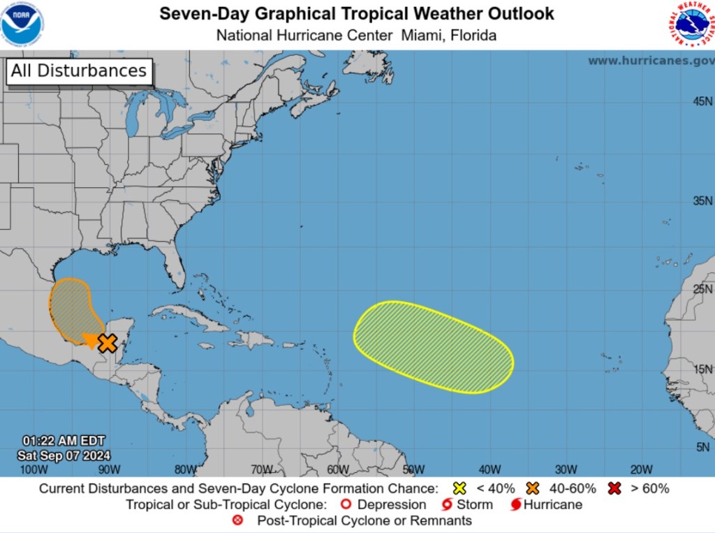 Una nueva depresión tropical se puede formar en aguas del Golfo de México en los próximos días. Hay una zona de interés que es monitores da por el Centro Nacional de Huracanes (NHC) y la misma tiene un 60% de desarrollo ciclónico en los próximos 5-7 días. Los estados como: Texas y Louisiana tienen que estar atentos a la evolución de este sistema en los próximos días.