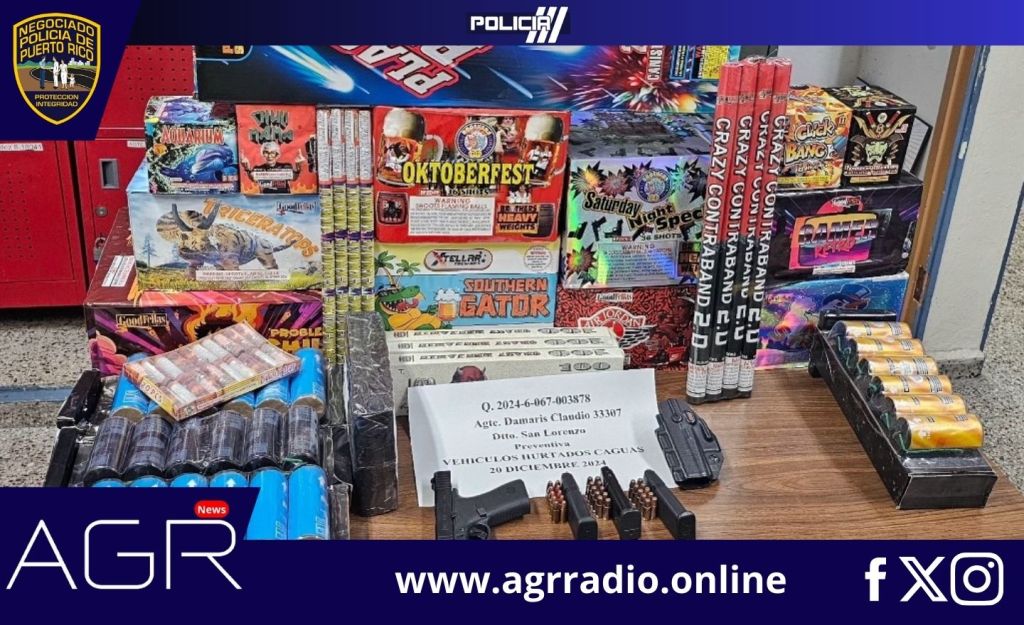Según se informó, se logró el arresto de un hombre de 35 años, al cual se le ocupo varias cajas de pirotecnia y dos armas de fuego la cual posee licencia.