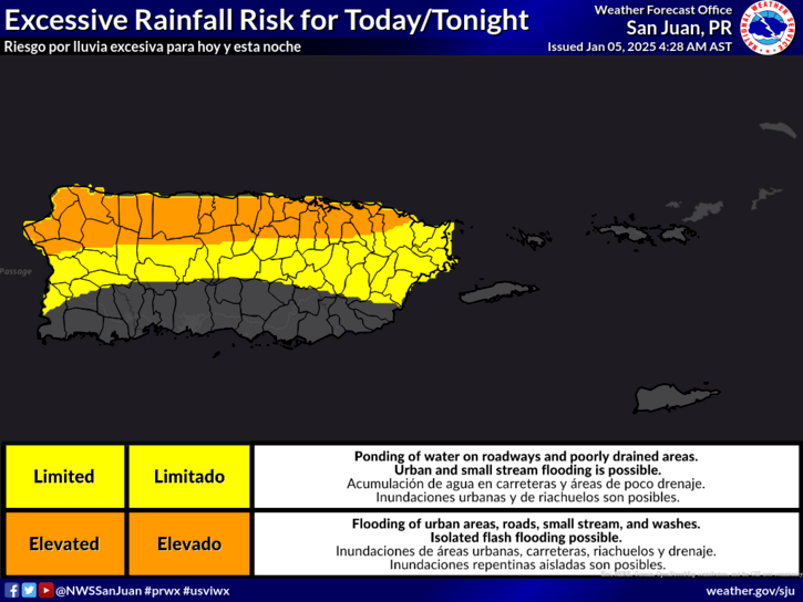 Acumulaciones de lluvia puede provocar inundaciones en las carreteras. Estas lluvias pueden extenderse a lo largo del noreste de Puerto Rico.