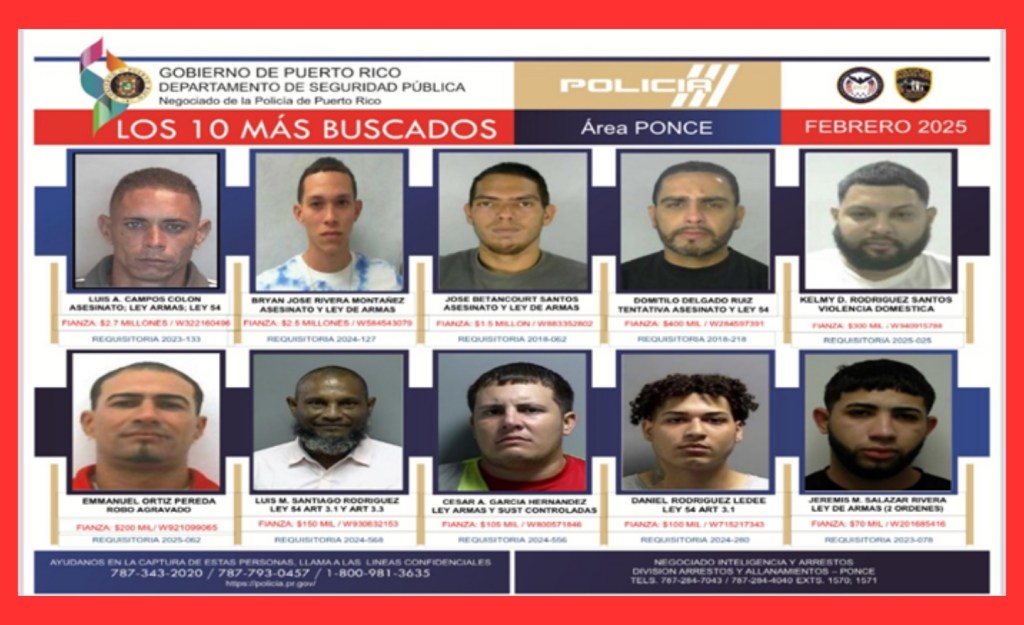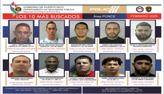La Policía actualizan la lista de “Los 10 Más Buscados” en el área de Ponce.