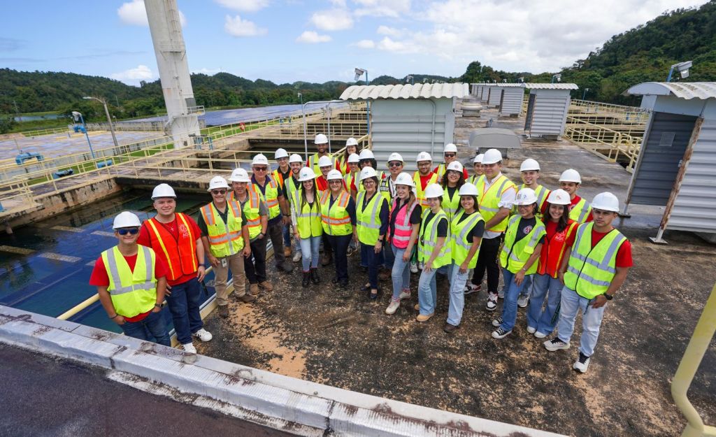 Estudiantes del Capítulo Estudiantil de la Asociación de Contratistas Generales (AGC) de la Universidad de Puerto Rico, Recinto de Mayagüez acompañaron a la presidenta ejecutiva de la Autoridad de Acueductos y Alcantarillados (AAA), Doriel Pagán Crespo a la planta de filtros Antonio Santiago (Superacueducto).
