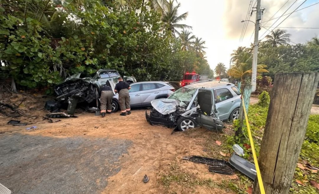 La Policía informa que en la carretera PR-187 cerca de la escuela Emiliano Figueroa, en Piñones, ocurrió un accidente, donde tres personas quedaron pilladas.