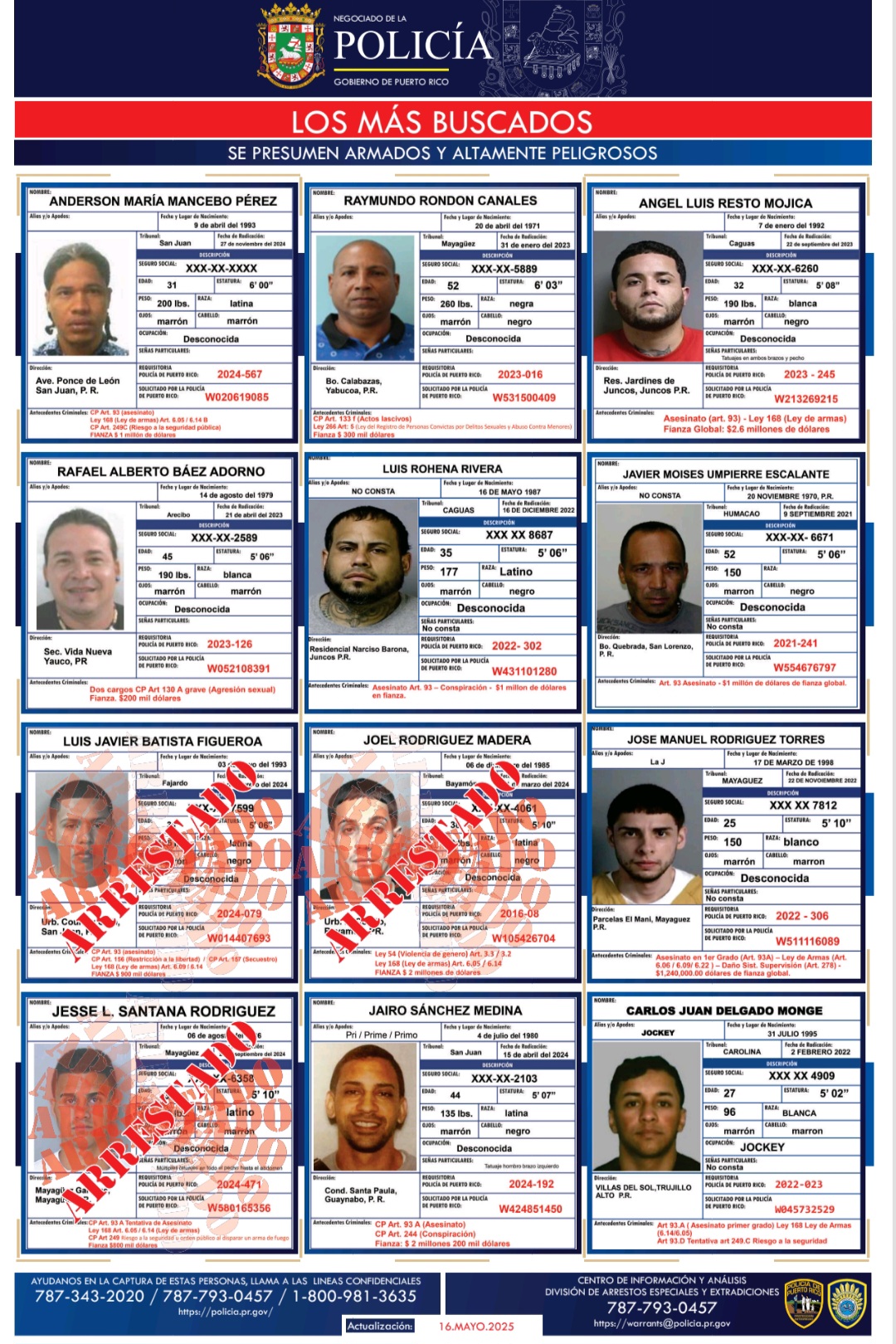 La Policía informó que actualizó la lista de “Los Más Buscados” a nivel Isla.