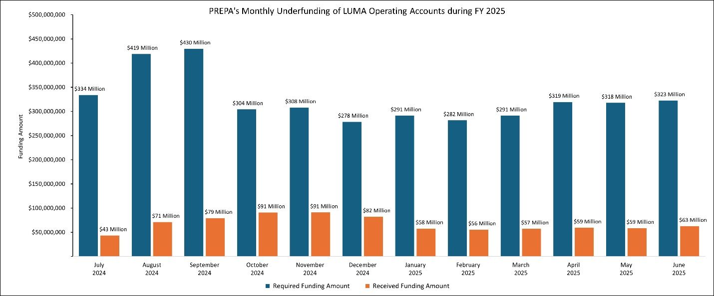 La falta de fondos también obligo a reasignar personal operativo clave. Desde enero, el 25% de la fuerza laboral dedicada a responder interrupciones del servicio, mantener el sistema y atender reclamaciones fue trasladada a proyectos financiados por FEMA, como la iniciativa de contadores inteligentes, mejoras a luminarias y reemplazo de postes. Aunque importantes, estos proyectos no tienen un impacto directo en la confiabilidad inmediata del sistema eléctrico.