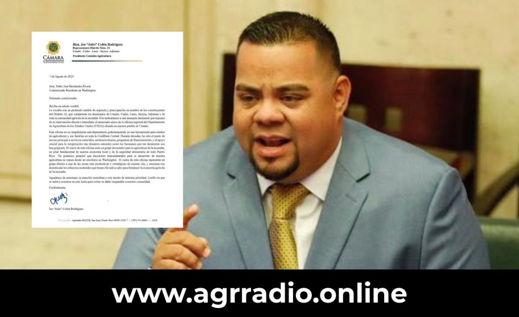 El Representante del Distrito 22, Joe “Joito” Colón Rodríguez, hizo un llamado al Comisionado Residente en Washington, Pablo José Hernández Rivera, para que se una en la defensa de los agricultores del centro de la isla, ante la posible clausura de la oficina local del Departamento de Agricultura de los Estados Unidos (USDA), ubicada en Utuado.