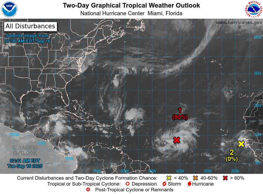Mientras tanto, el Centro Nacional de Huracanes (NHC) monitorea de cerca al sistema Invest 92L, ubicado en el Atlántico central. Esta perturbación tropical muestra una amplia zona de aguaceros desorganizados, pero se espera que encuentre condiciones más favorables para su desarrollo en los próximos días.