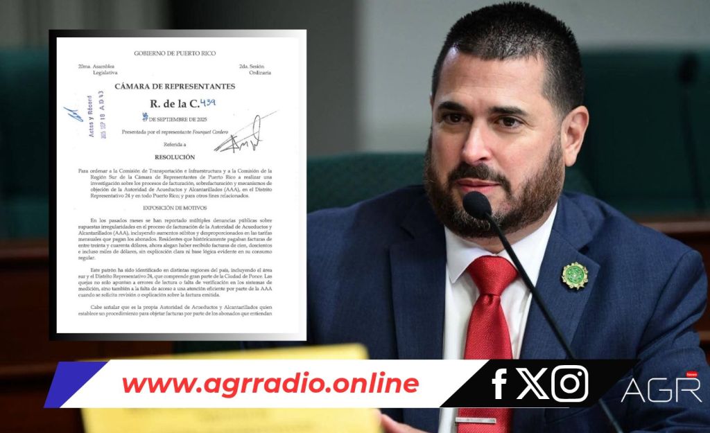 El representante por el Distrito 24 (Ponce), Ángel “Tito” Fourquet, anunció -hoy jueves-, la radicación de la Resolución de la Cámara 439, para que se investiguen los procesos de facturación, posibles sobrefacturaciones y el mecanismo de objeción de la Autoridad de Acueductos y Alcantarillados (AAA), tanto en el Distrito 24 como en todo Puerto Rico.