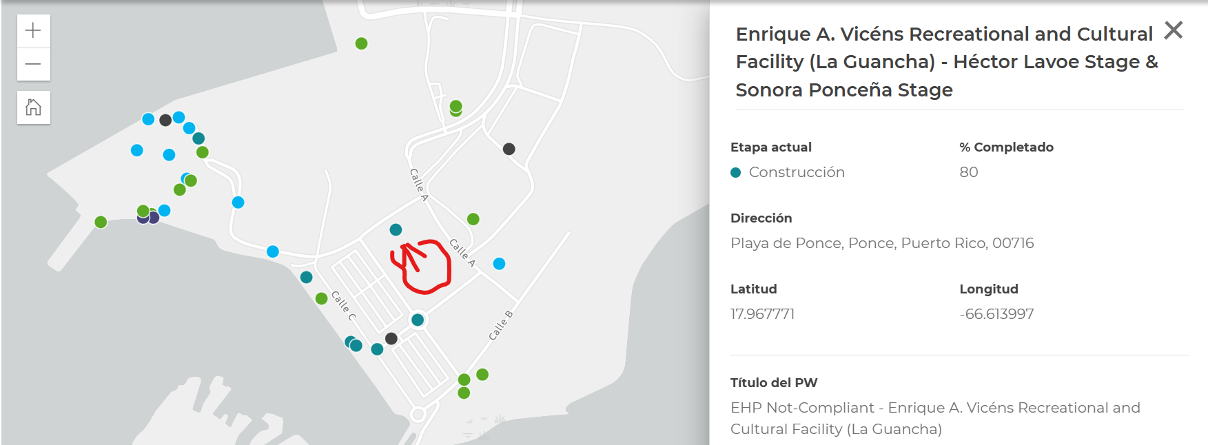 PONCE — El complejo recreativo y cultural Enrique A. Vicéns, conocido como «La Guancha», continúa su proceso de reconstrucción tras los daños sufridos por el huracán María. Según datos del portal de la Oficina de Recuperación, Reconstrucción y Resiliencia (COR3), el proyecto se encuentra actualmente en etapa de construcción, con un 80% de progreso reportado al cierre del tercer trimestre de 2025.