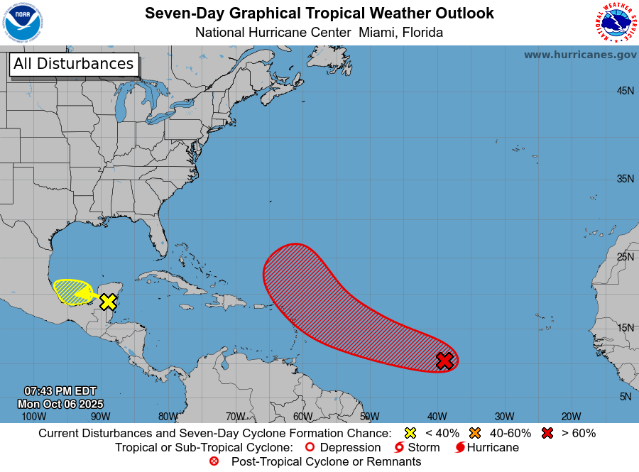 El Servicio Nacional de Meteorología (SNM) informó que una zona de baja presión ubicada aproximadamente a 1500 millas al este de las Islas de Barlovento continúa mostrando signos de organización, lo que podría dar paso a la formación de una tormenta tropical en el corto plazo.
