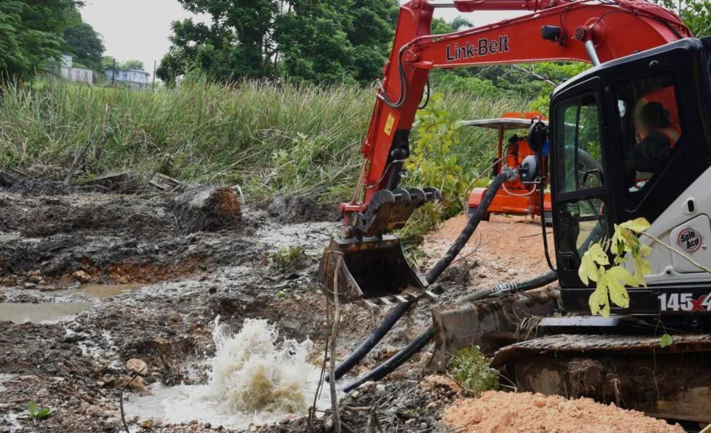 Las brigadas técnicas continúan con las tareas de excavación en el área afectada del Superacueducto, como parte del proceso para restaurar el servicio tras la avería reportada. Los trabajos se concentran en delimitar el terreno, localizar con precisión las secciones comprometidas de la tubería principal —de 72 pulgadas de diámetro— y dar paso a las reparaciones estructurales necesarias.