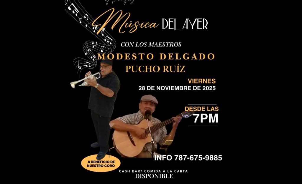 El evento se llevará a cabo el viernes 28 de noviembre a las 7:00 p.m. en un espacio escénico de la ciudad de Ponce. La noche estará dedicada a la música popular puertorriqueña, con presentaciones de los reconocidos intérpretes Pucho Ruiz y Modesto Delgado, quienes evocarán memorias y tradiciones a través de su repertorio.