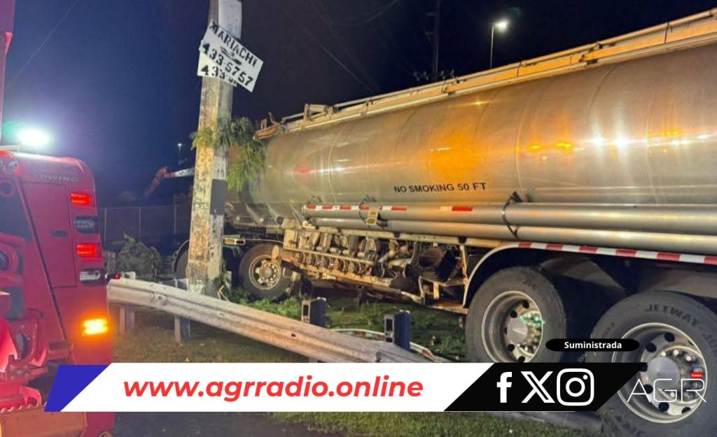 Un camión cisterna que transportaba gasolina se estrelló contra un poste de utilidades en la salida hacia Cupey durante la madrugada de -hoy domingo-, provocando una situación de alto riesgo y un fuerte tapón en la zona.
