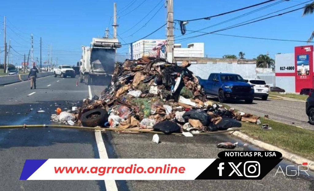 Un camión de desperdicios sólidos se incendió mientras transitaba por la carretera PR-2, frente al Centro Comercial Plaza del Norte en Hatillo, lo que obligó al conductor a descargar la basura sobre el pavimento como medida de seguridad.