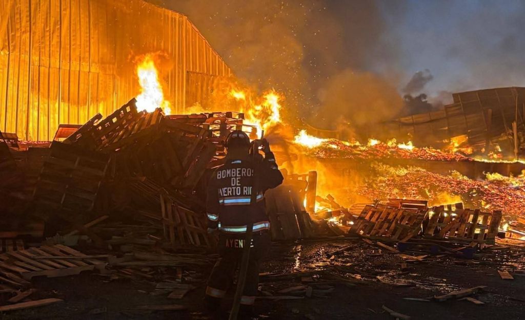 Según se informó, el incendio ocurrio en la planta de Pallets Recycling. Debido al fuego la entrada de la urbanización Los Montes de Vega Alta está cerrado en lo que culmina la investigación y control del siniestro.