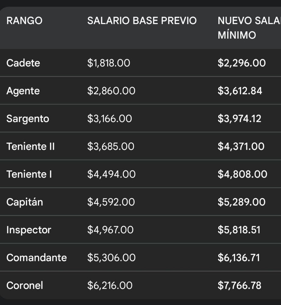 La propuesta busca corregir fallas históricas donde rangos inferiores percibían compensaciones similares o superiores a sus supervisores. Bajo el nuevo modelo, los incrementos son notables: